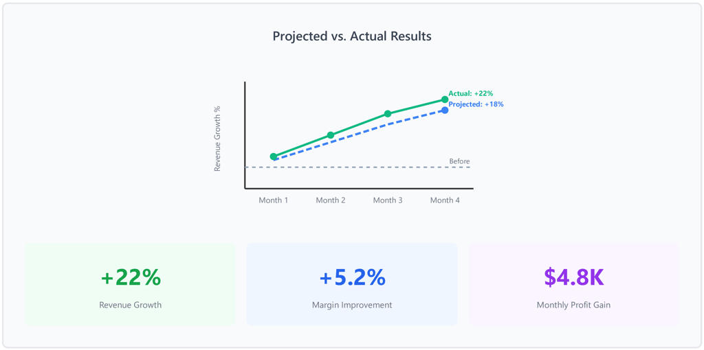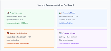 We present our findings in a clear, actionable format with clear visualizations. We provide dashboard access you can use immediately. You'll see exactly which prices to adjust, by how much, and why.